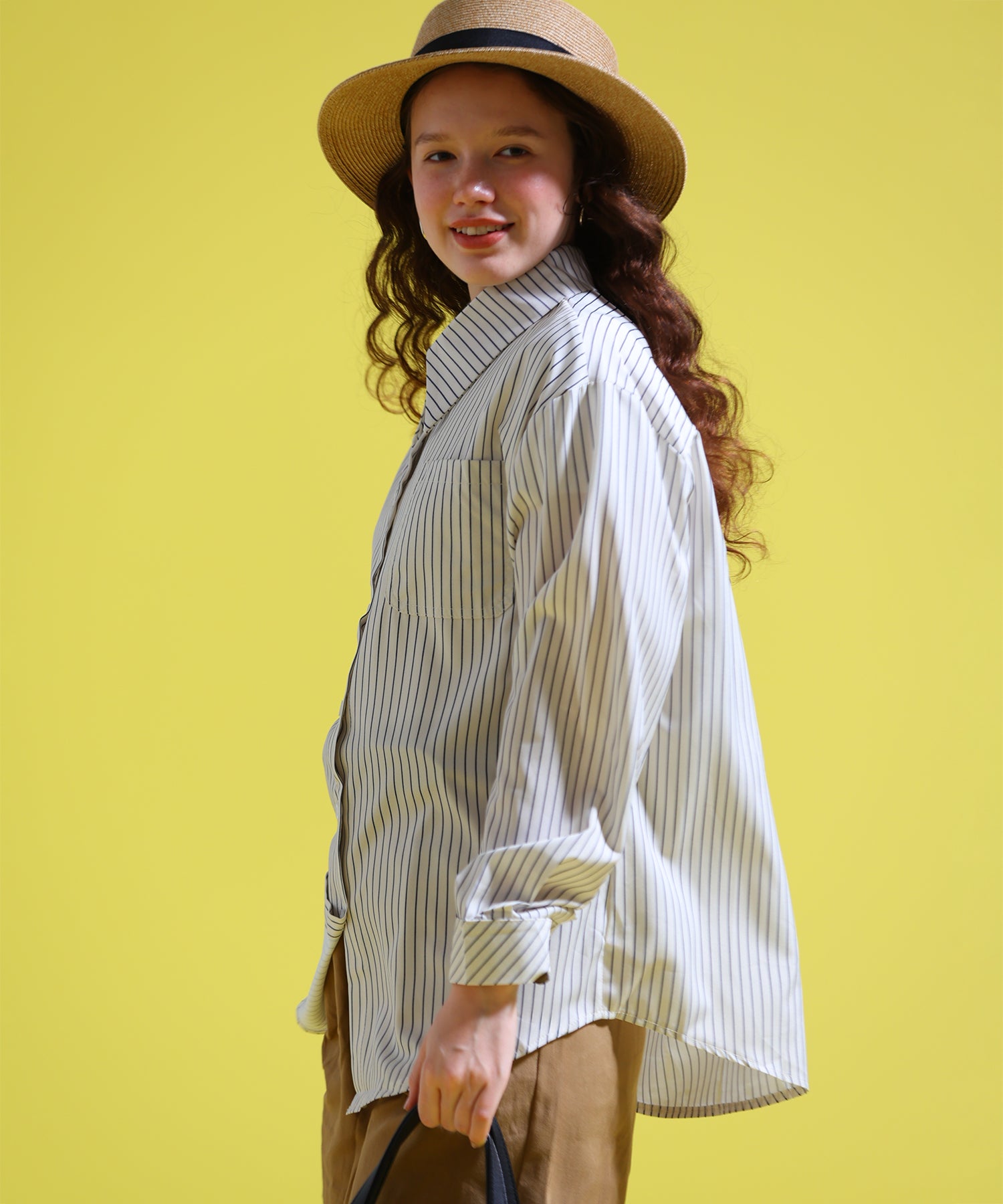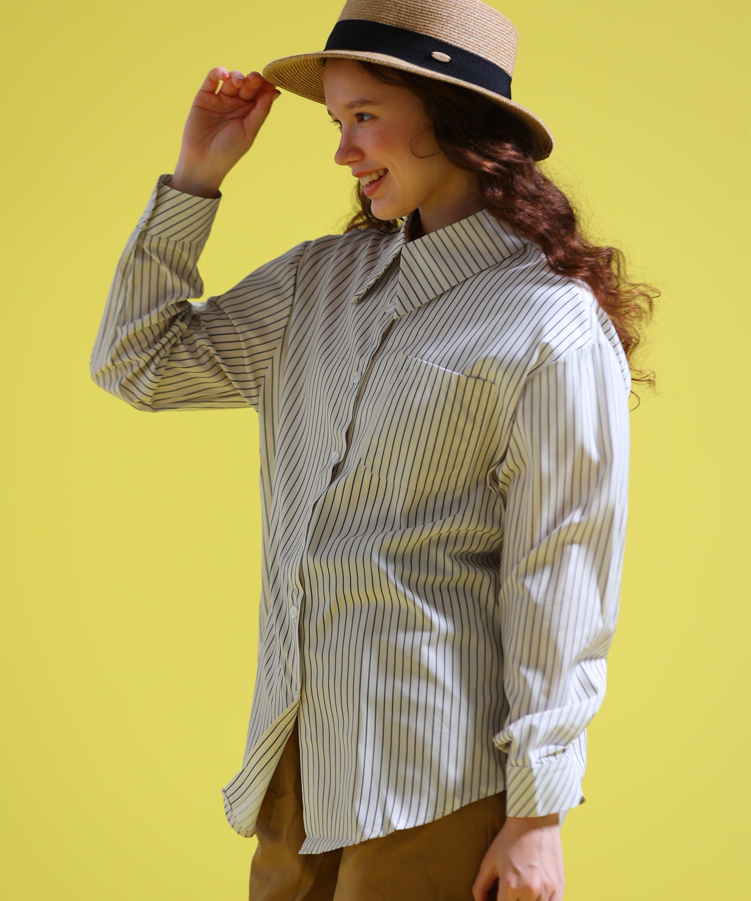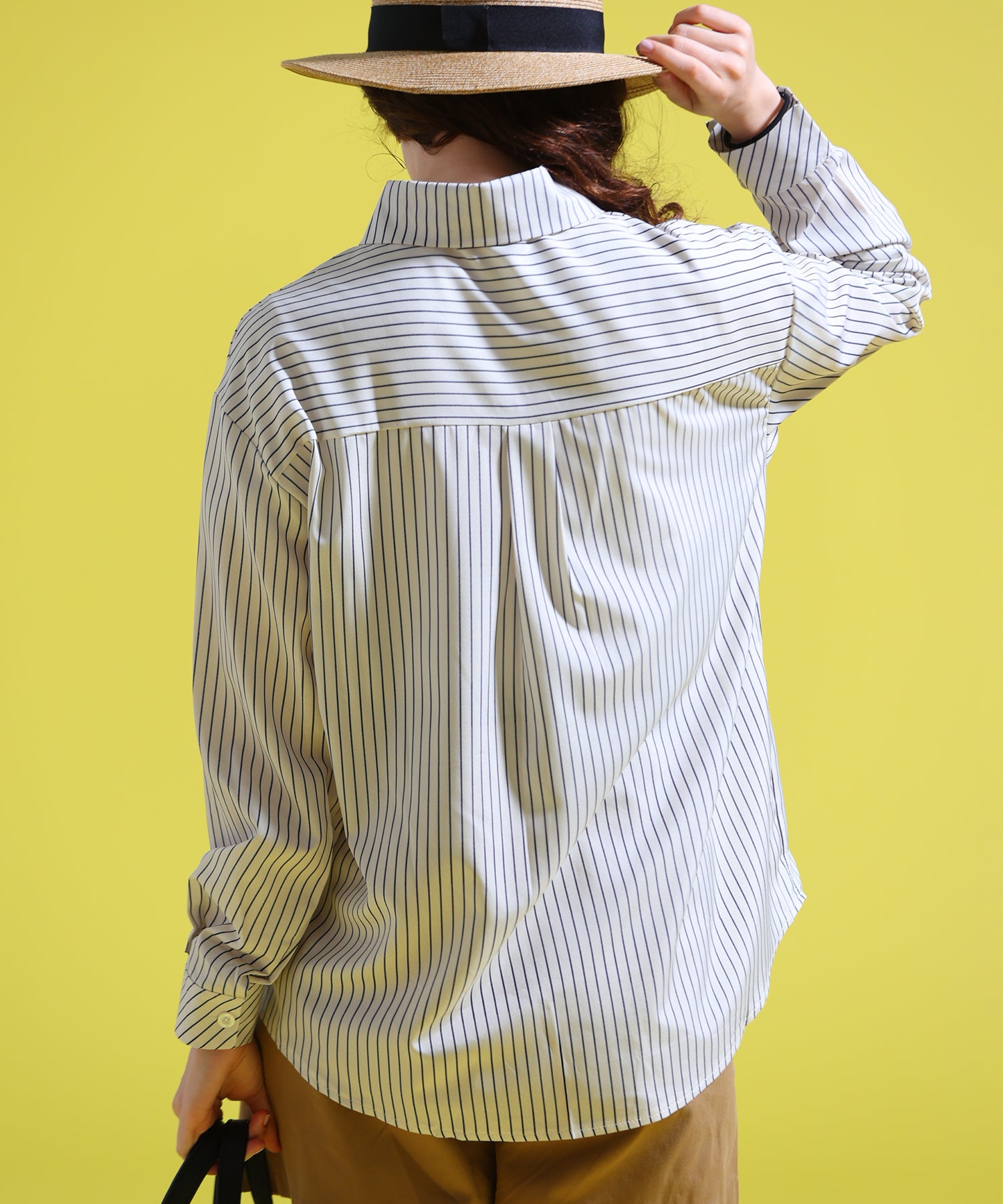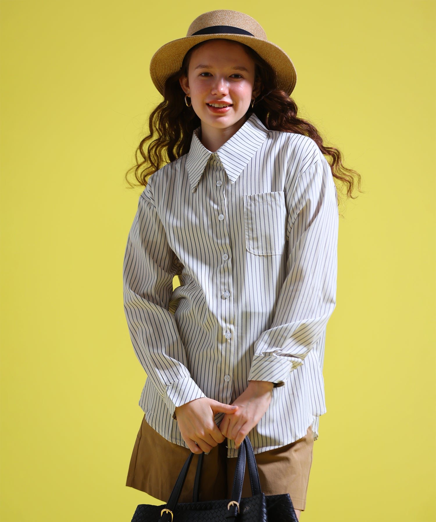 ニュアンスカラーでクラシックにきまるストライプシャツ