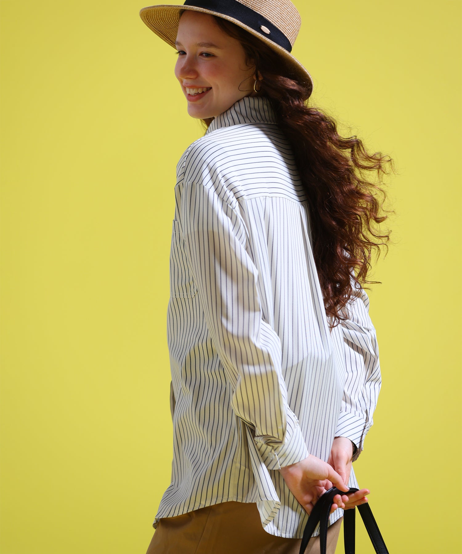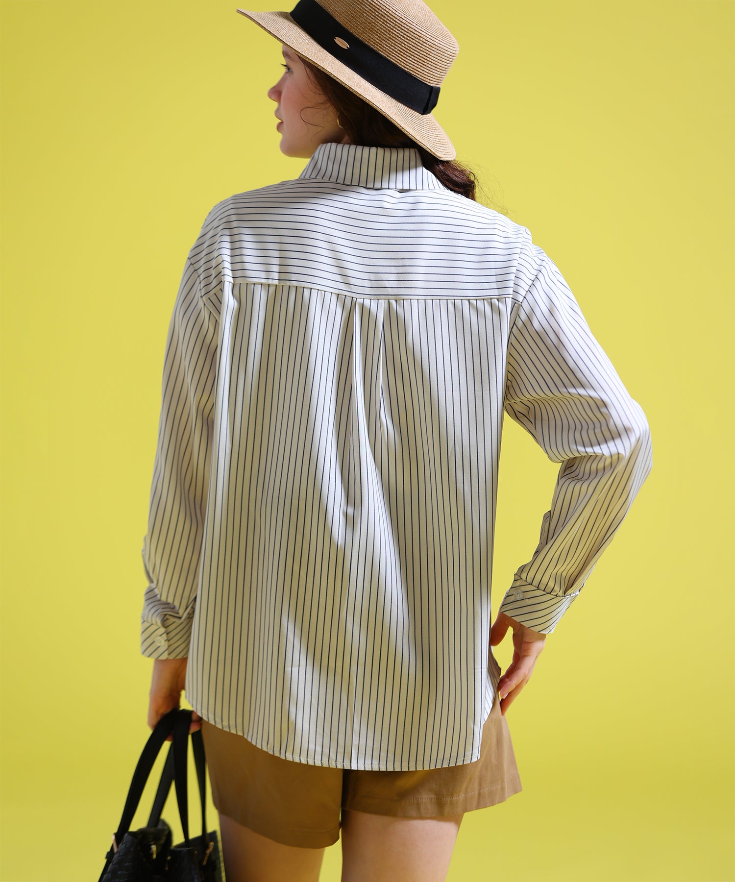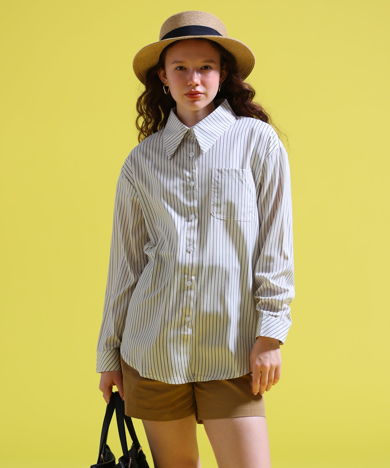 ニュアンスカラーでクラシックにきまるストライプシャツ