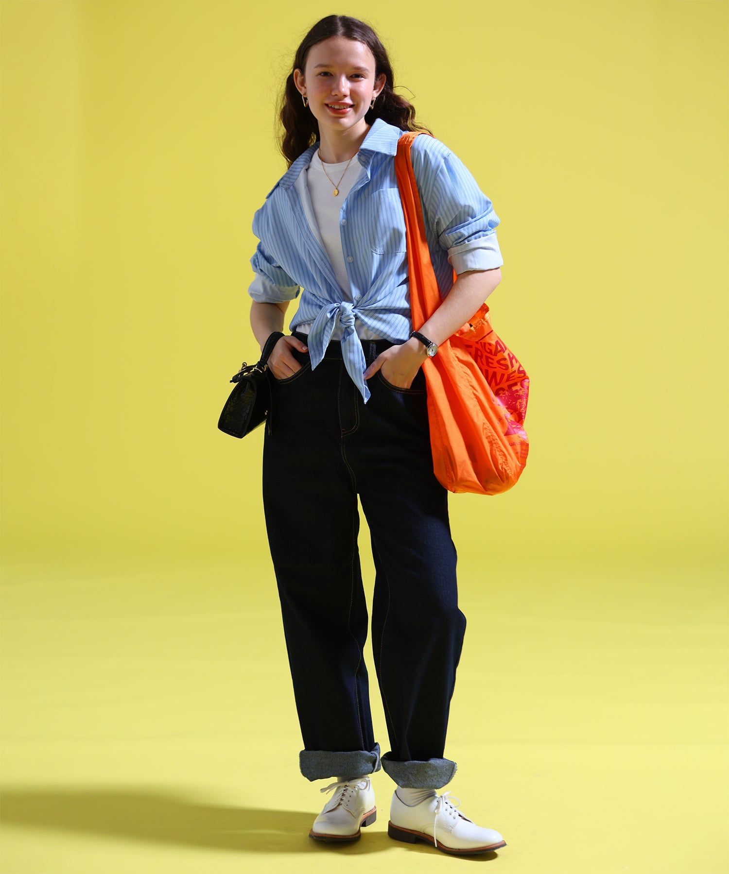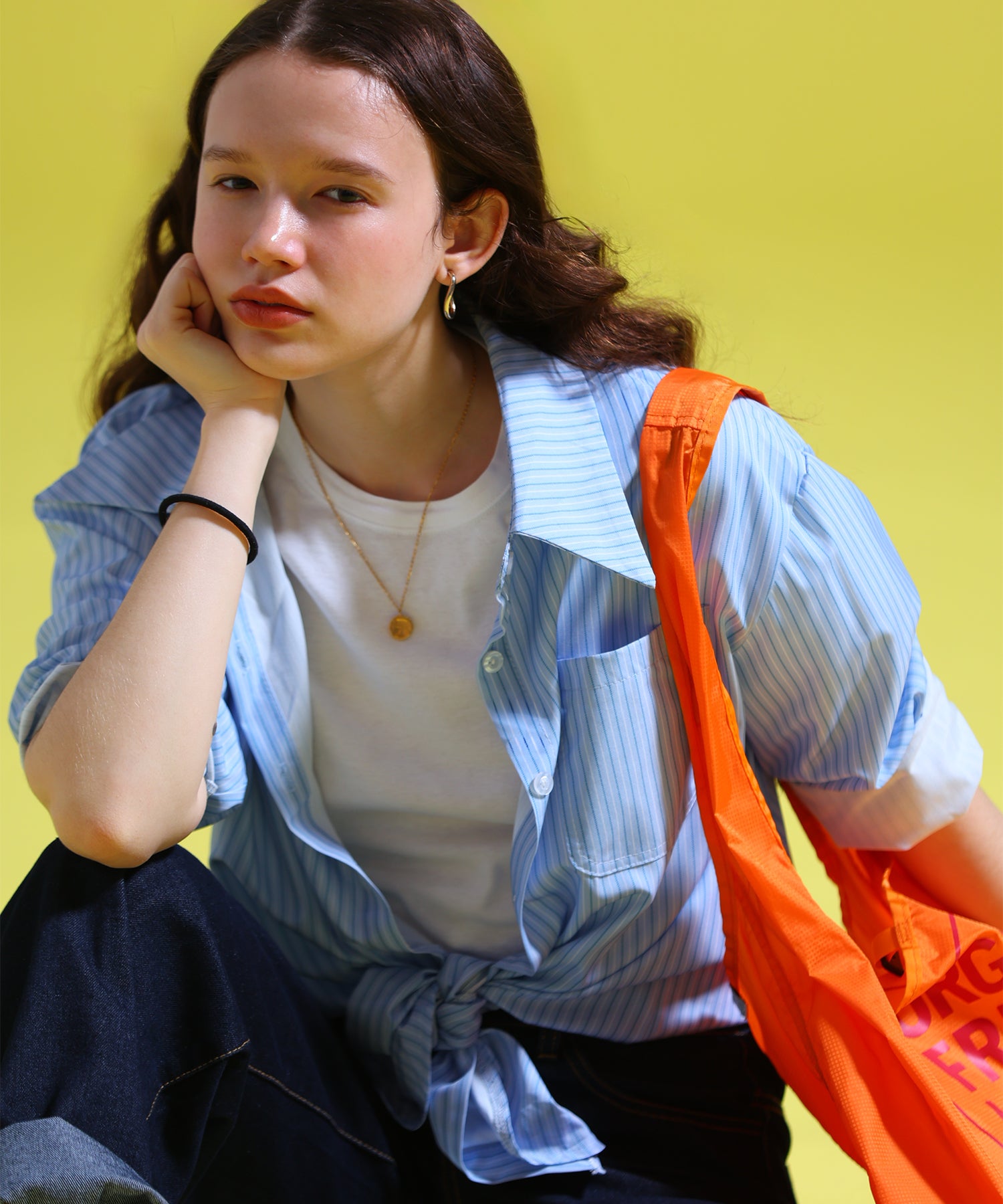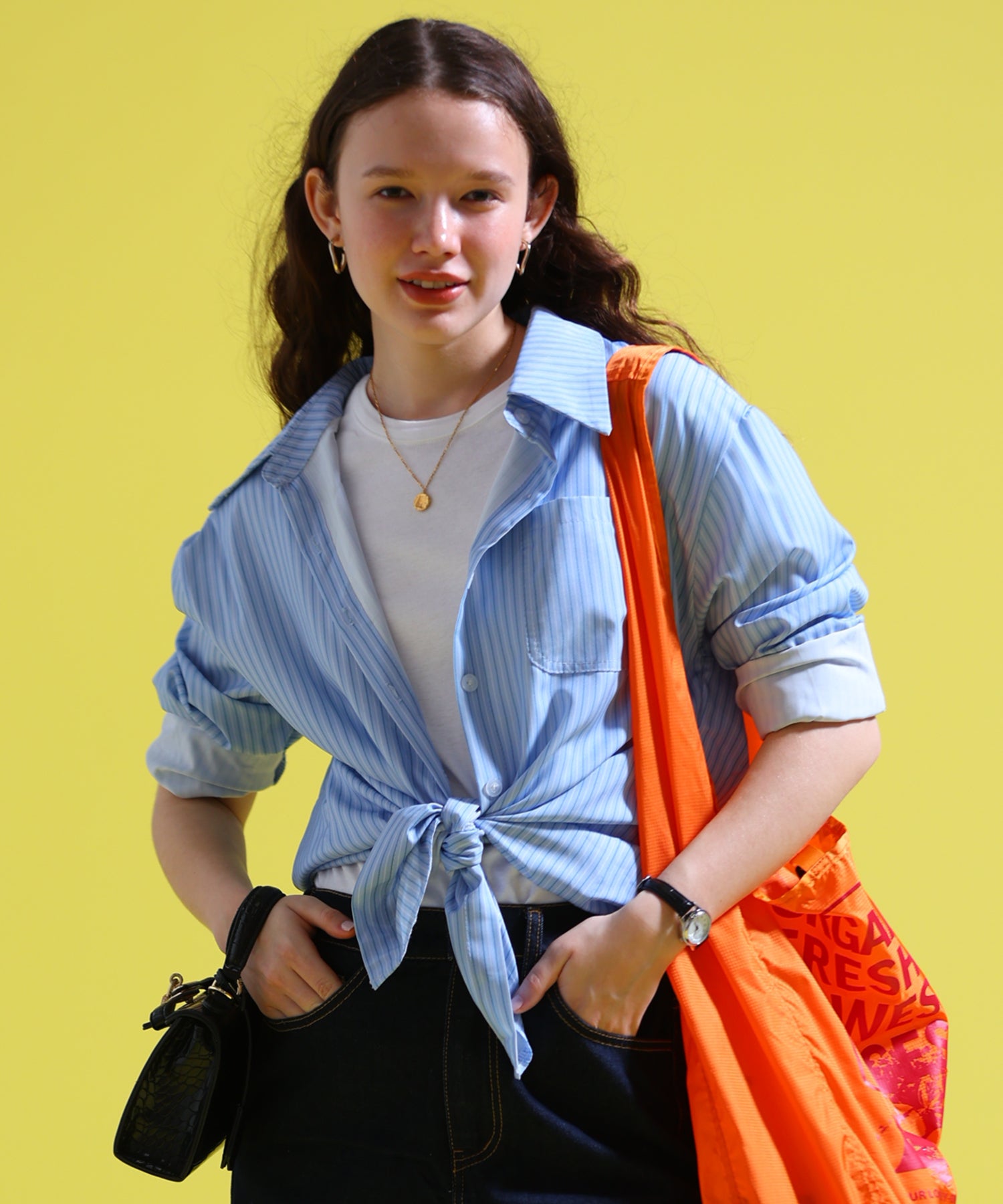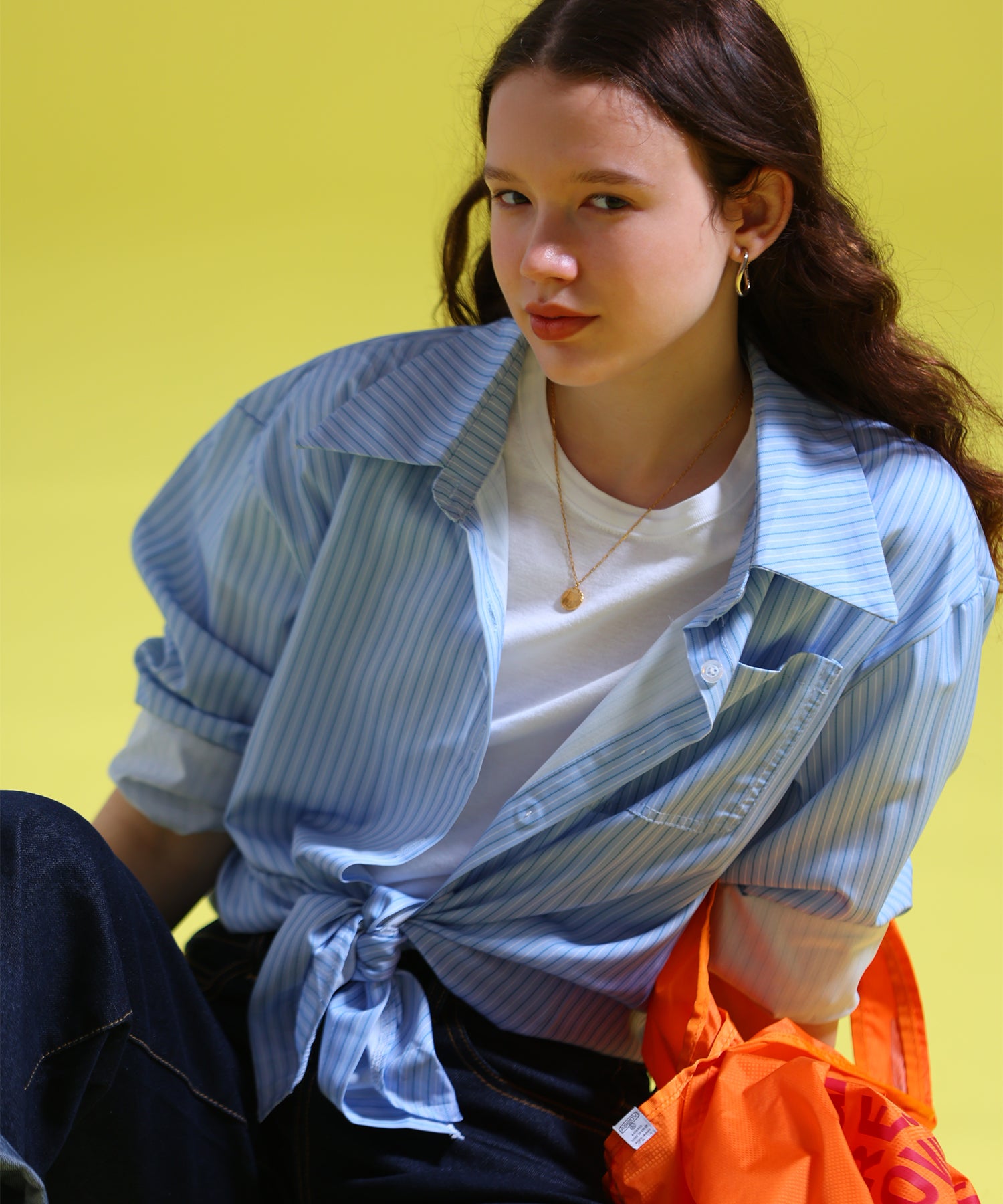 ニュアンスカラーでクラシックにきまるストライプシャツ