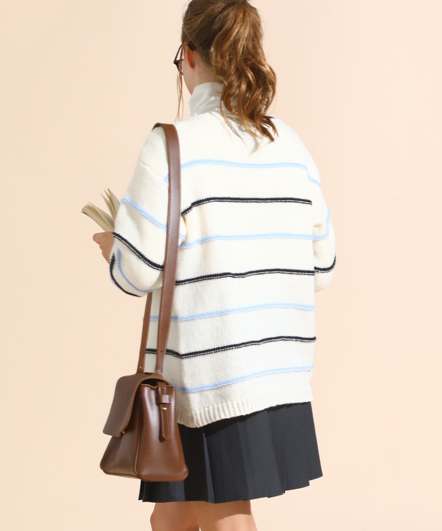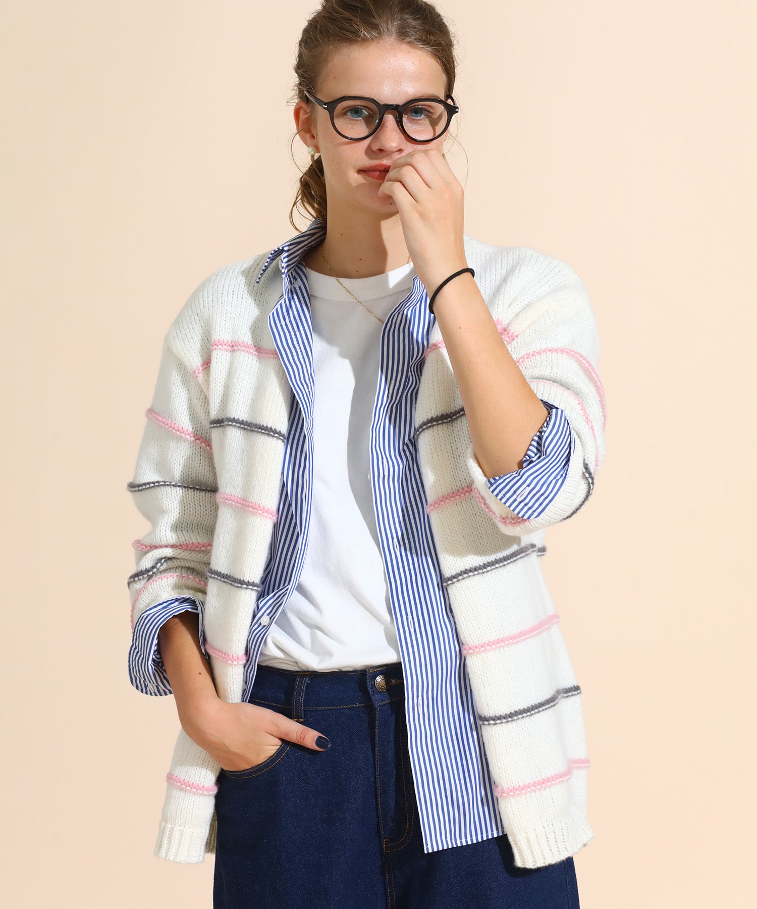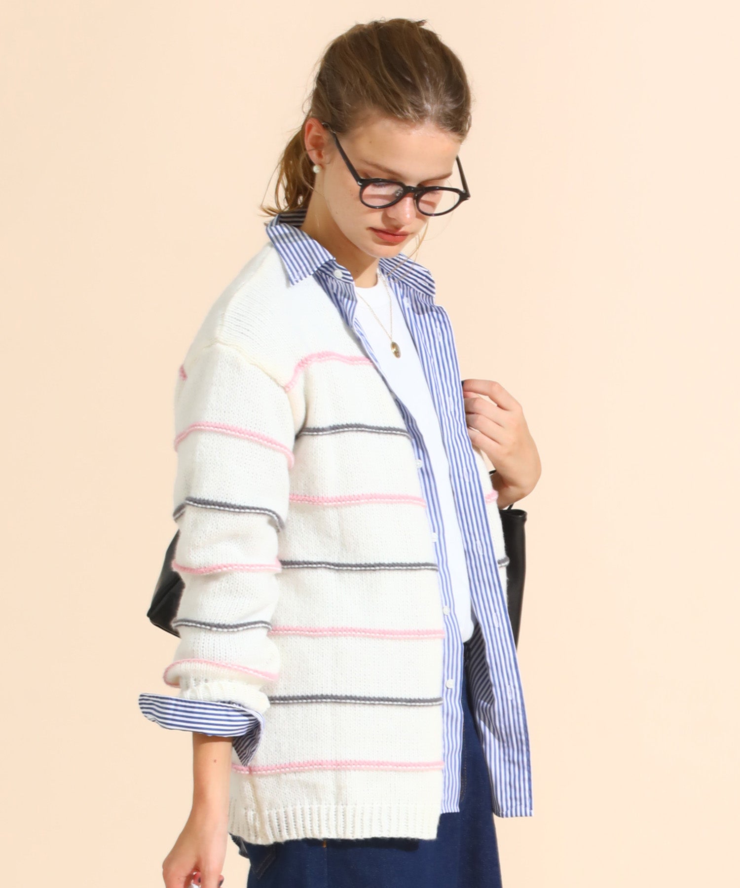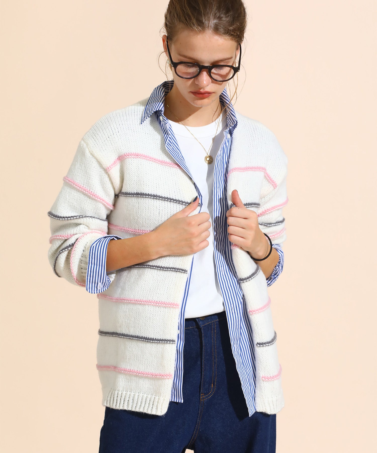 カラーボーダールーズニットカーデ