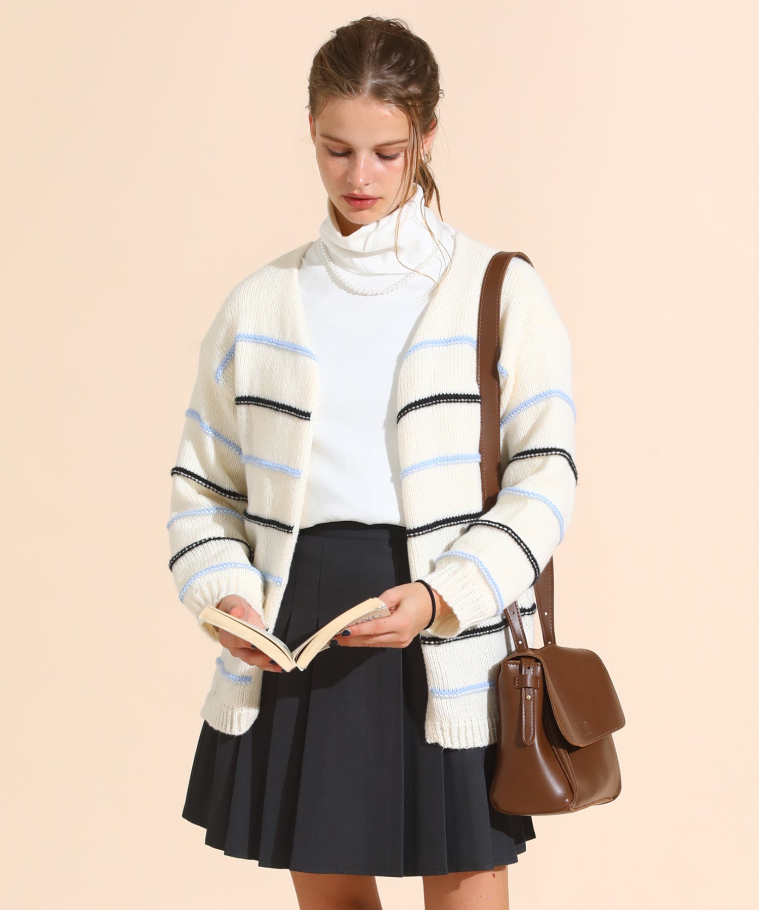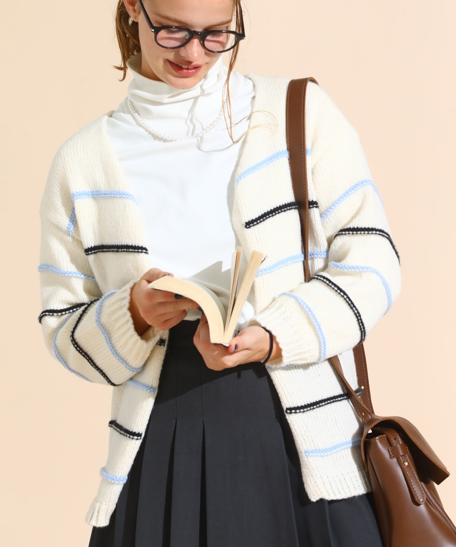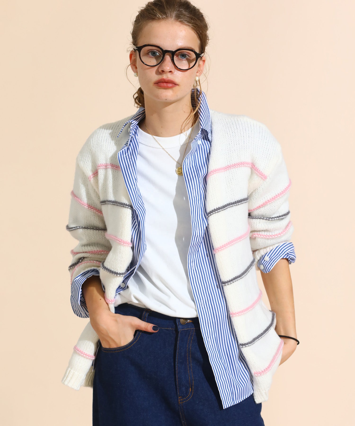 カラーボーダールーズニットカーデ