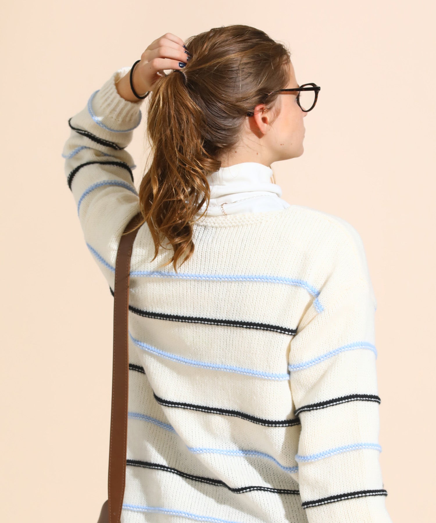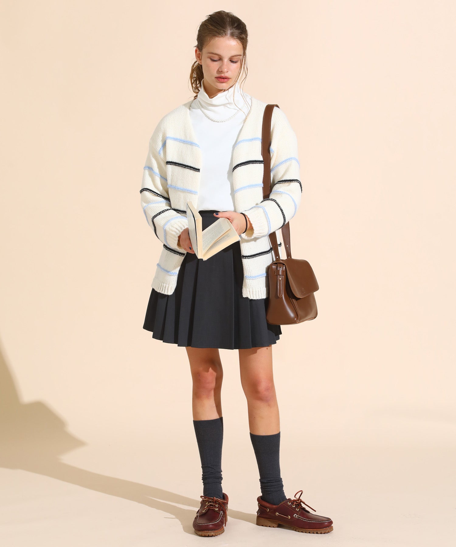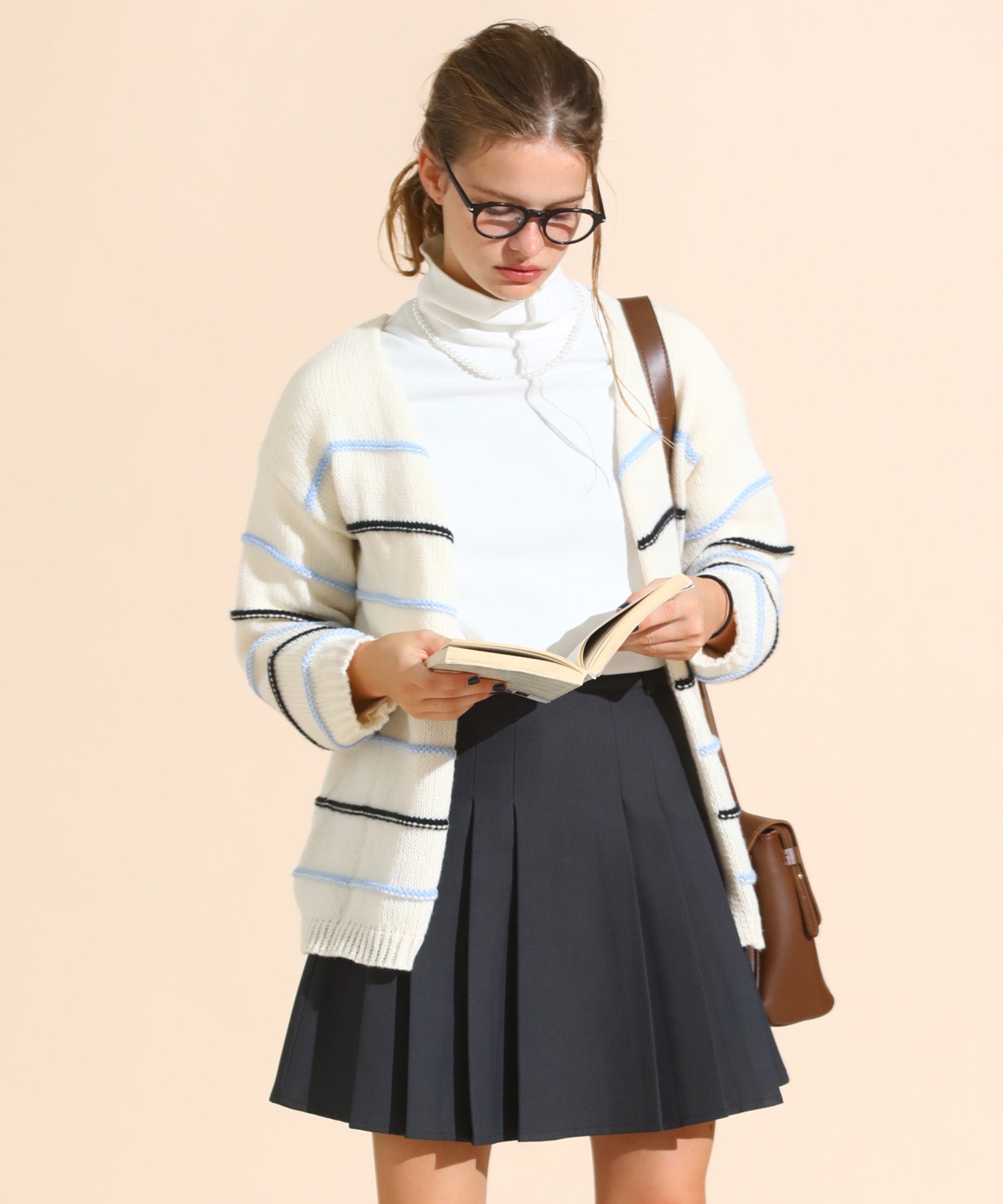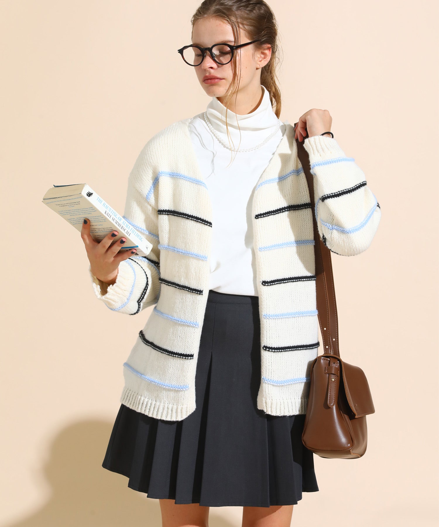 カラーボーダールーズニットカーデ