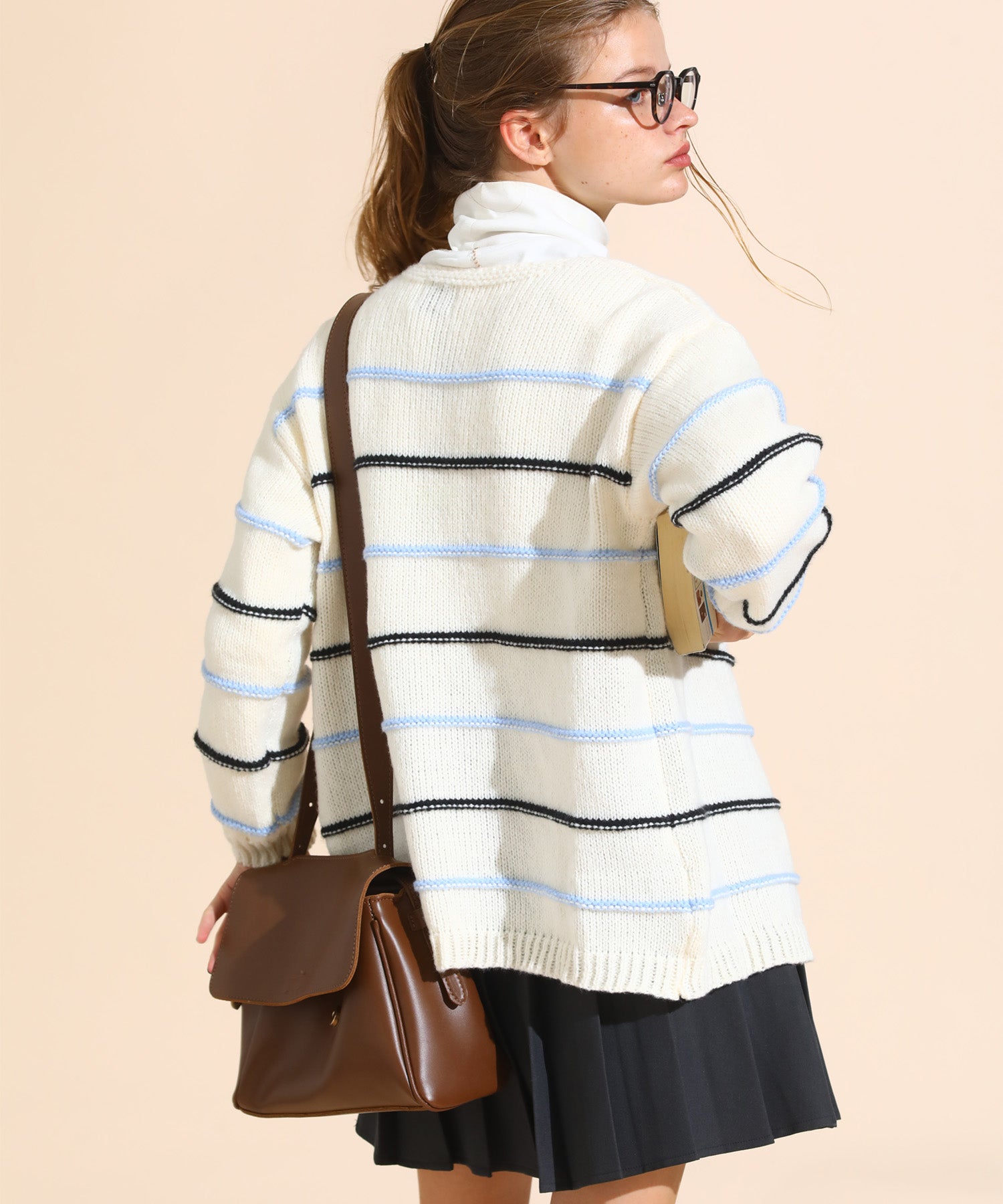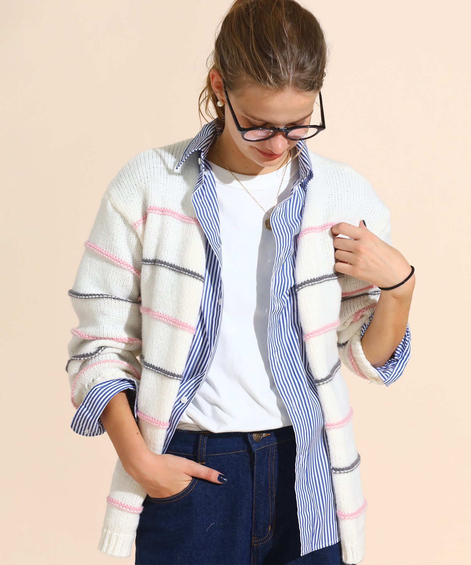 マルチカラーがかわいいルーズニットカーデ