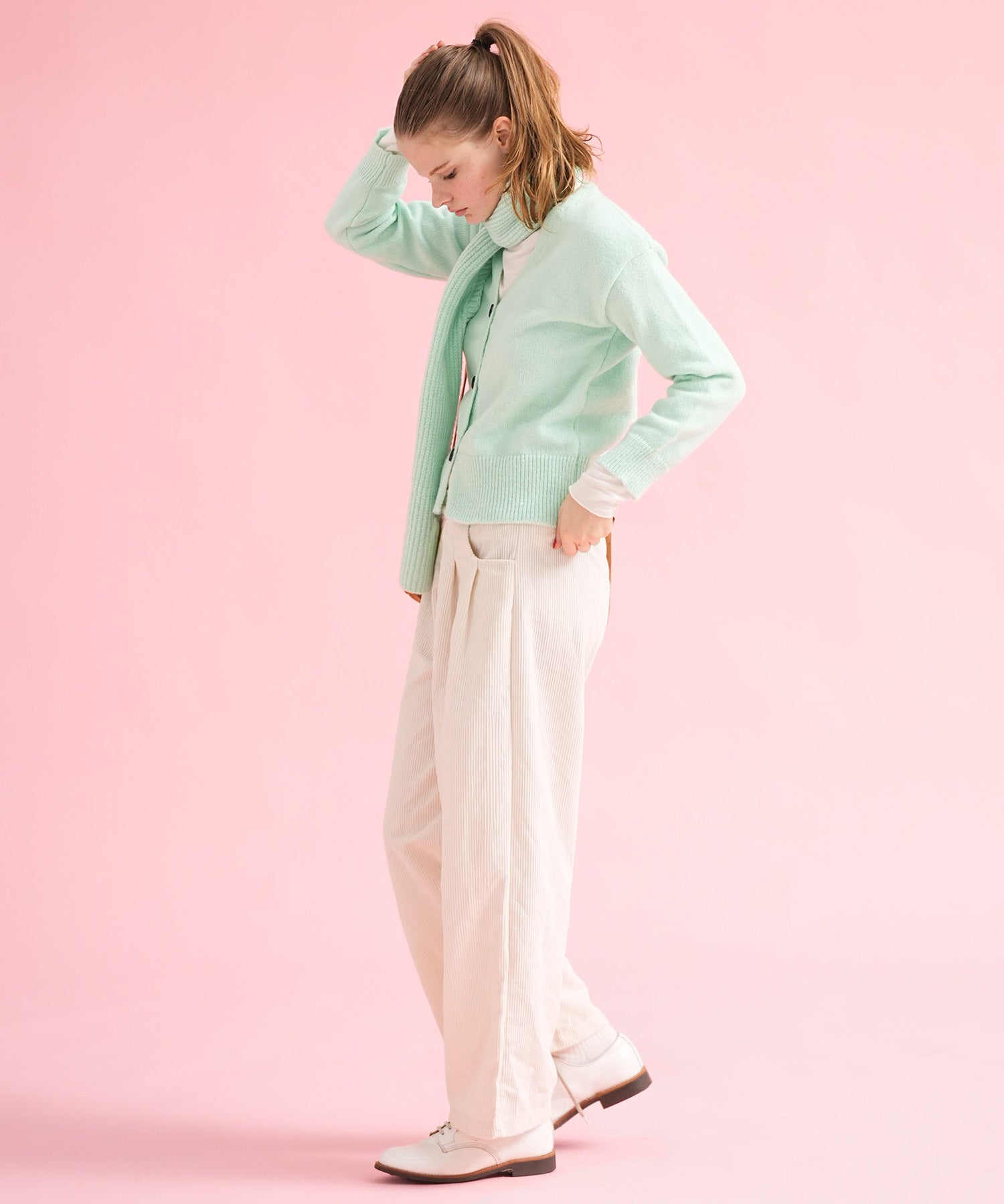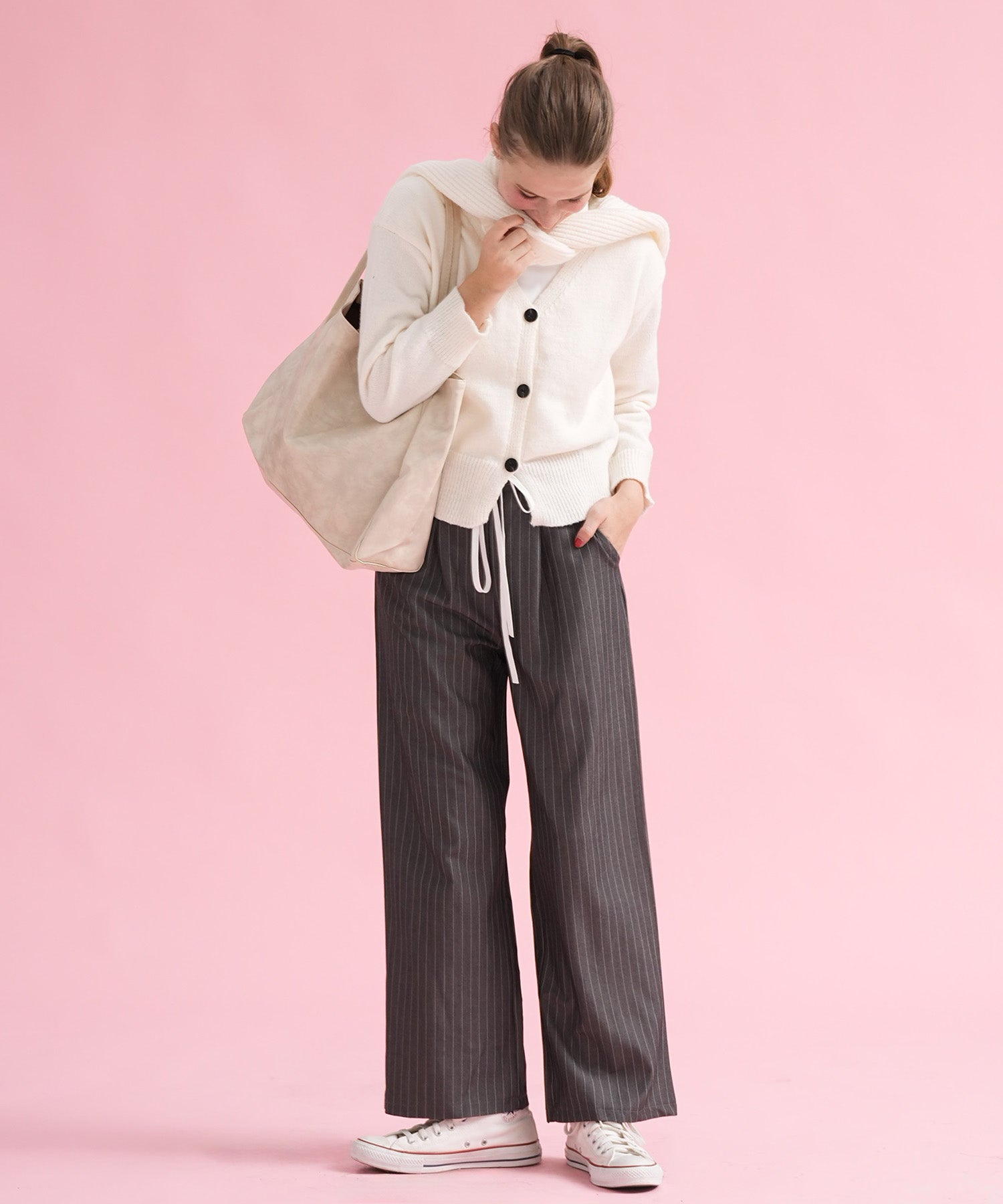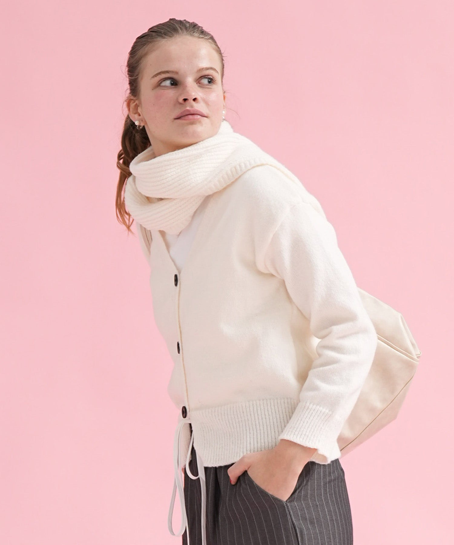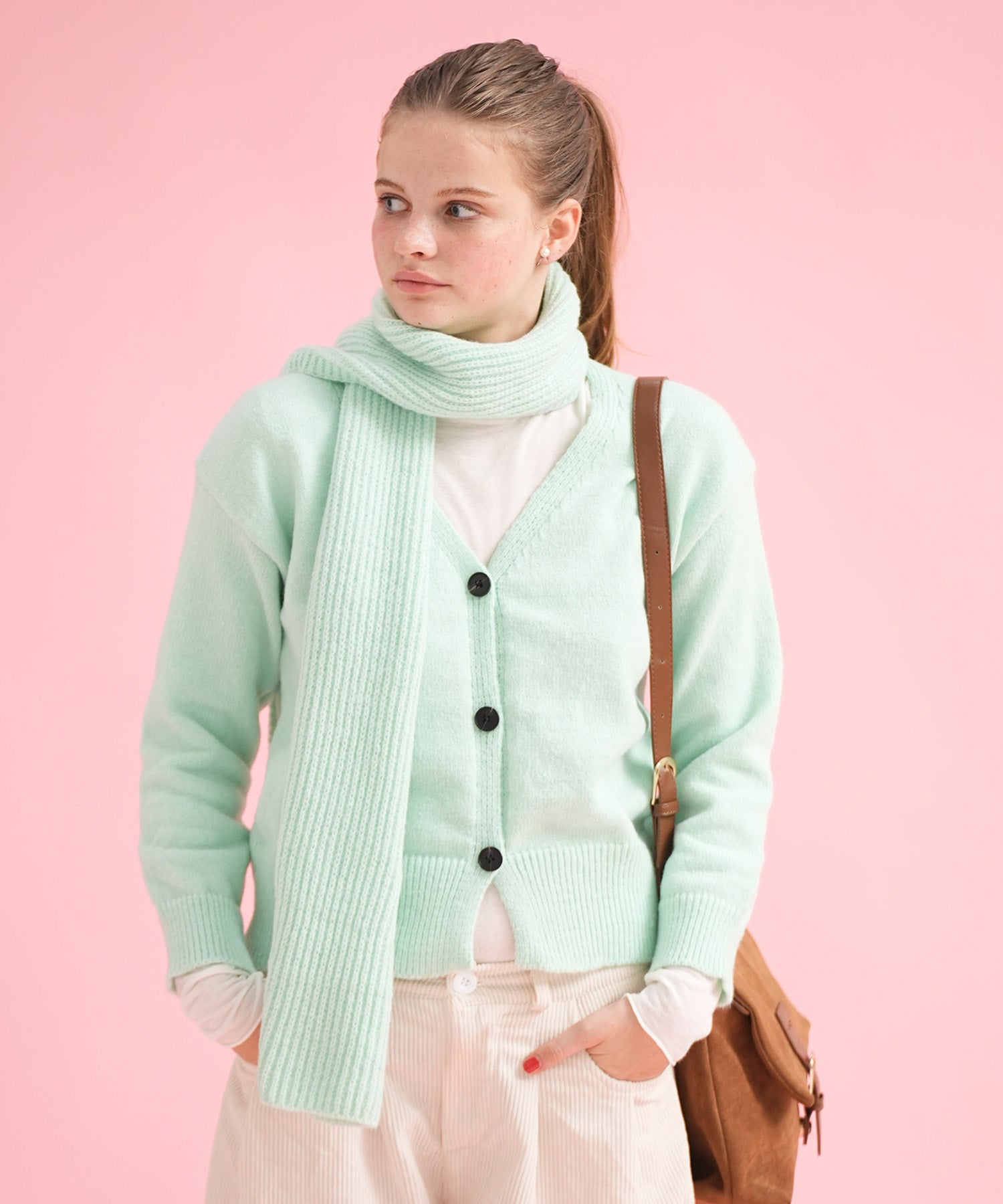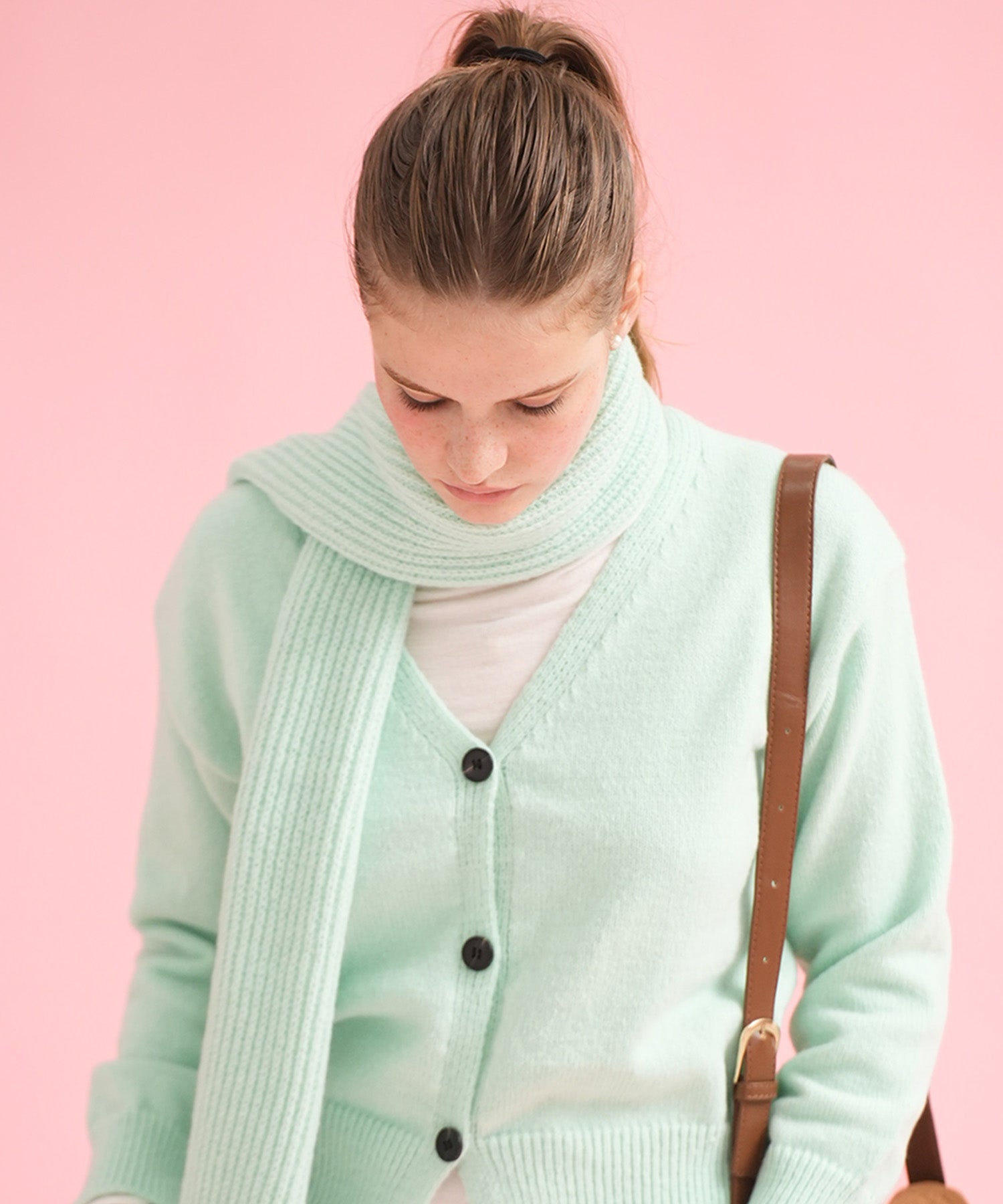 カーディガンはVネックで抜け感のある大人な印象に着こなせます。
