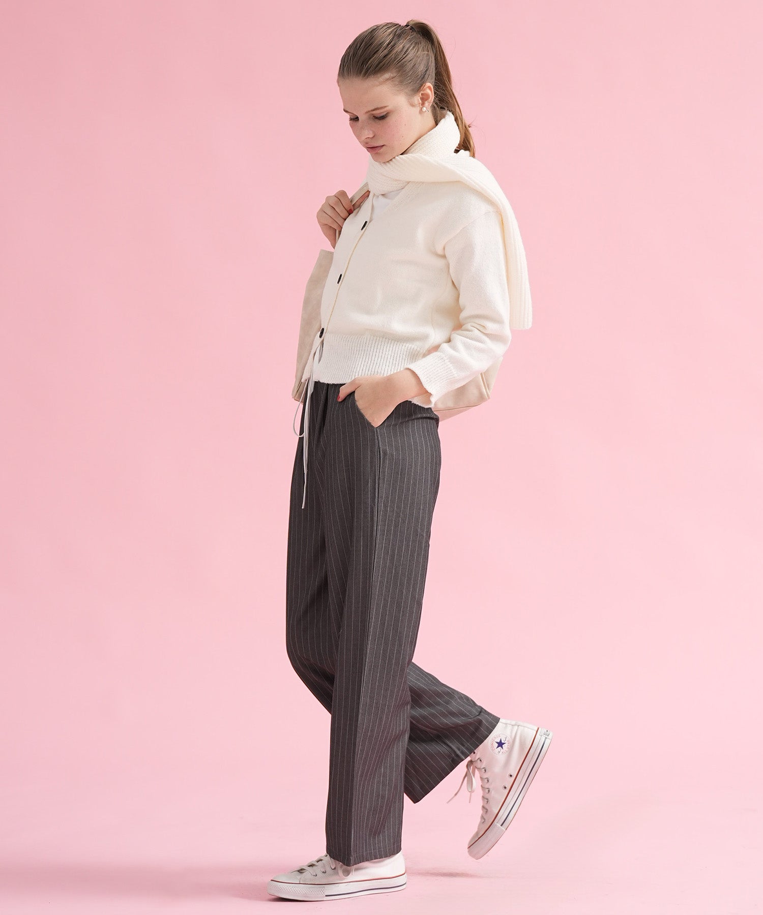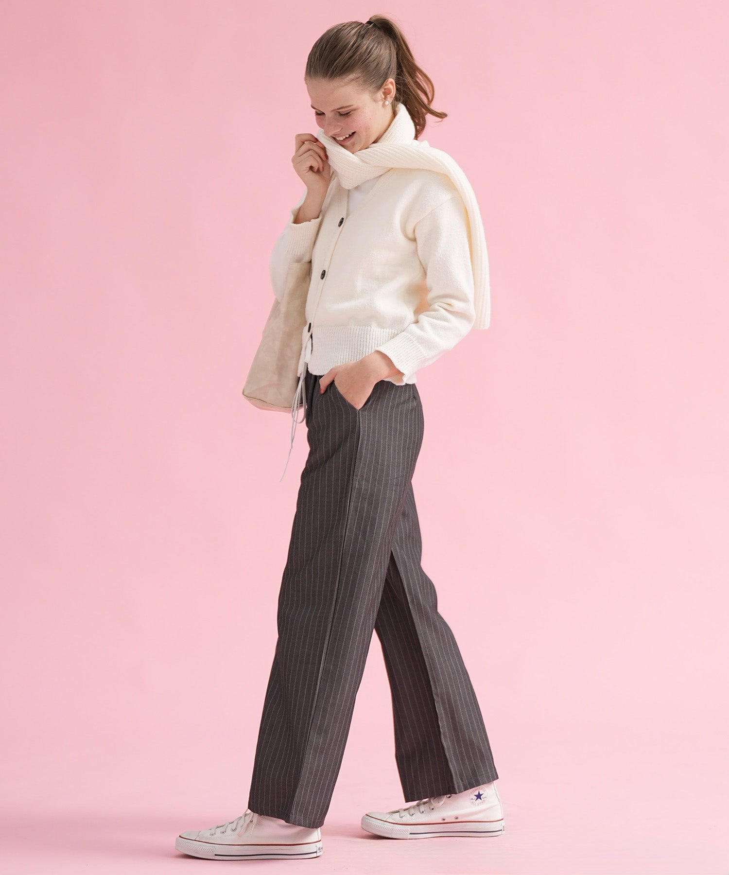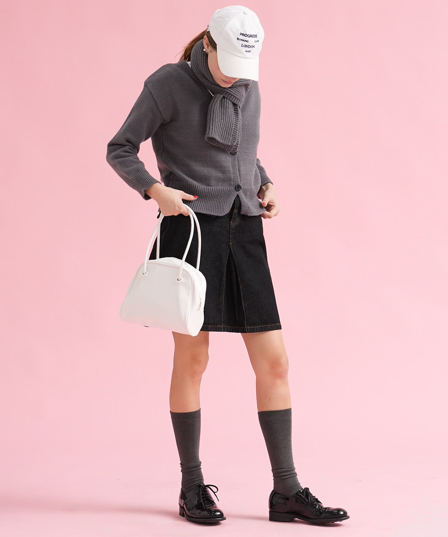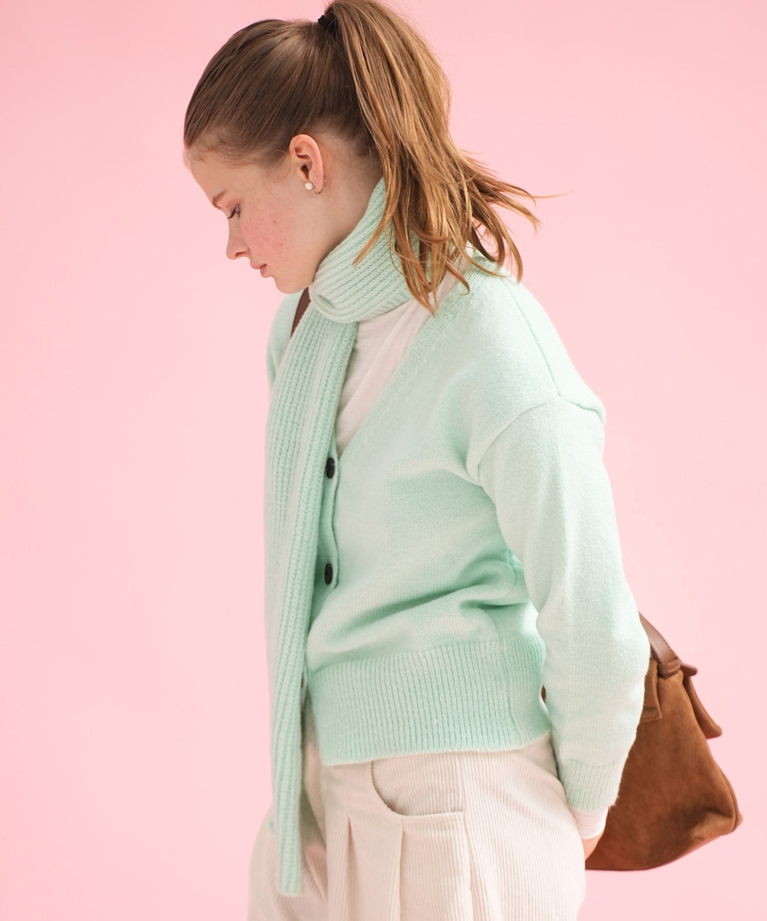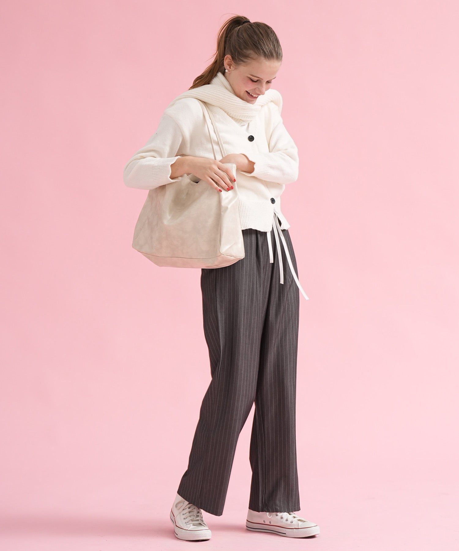 カーディガンはVネックで抜け感のある大人な印象に着こなせます。