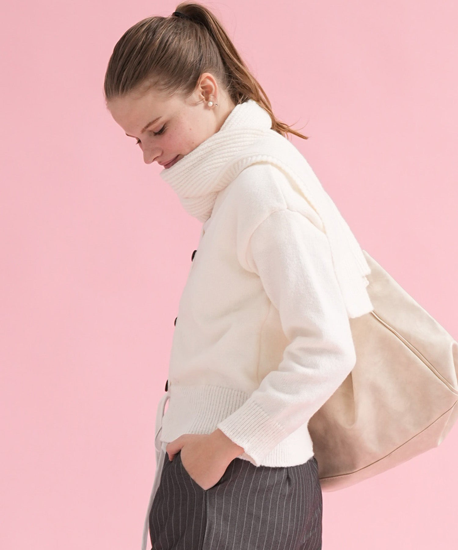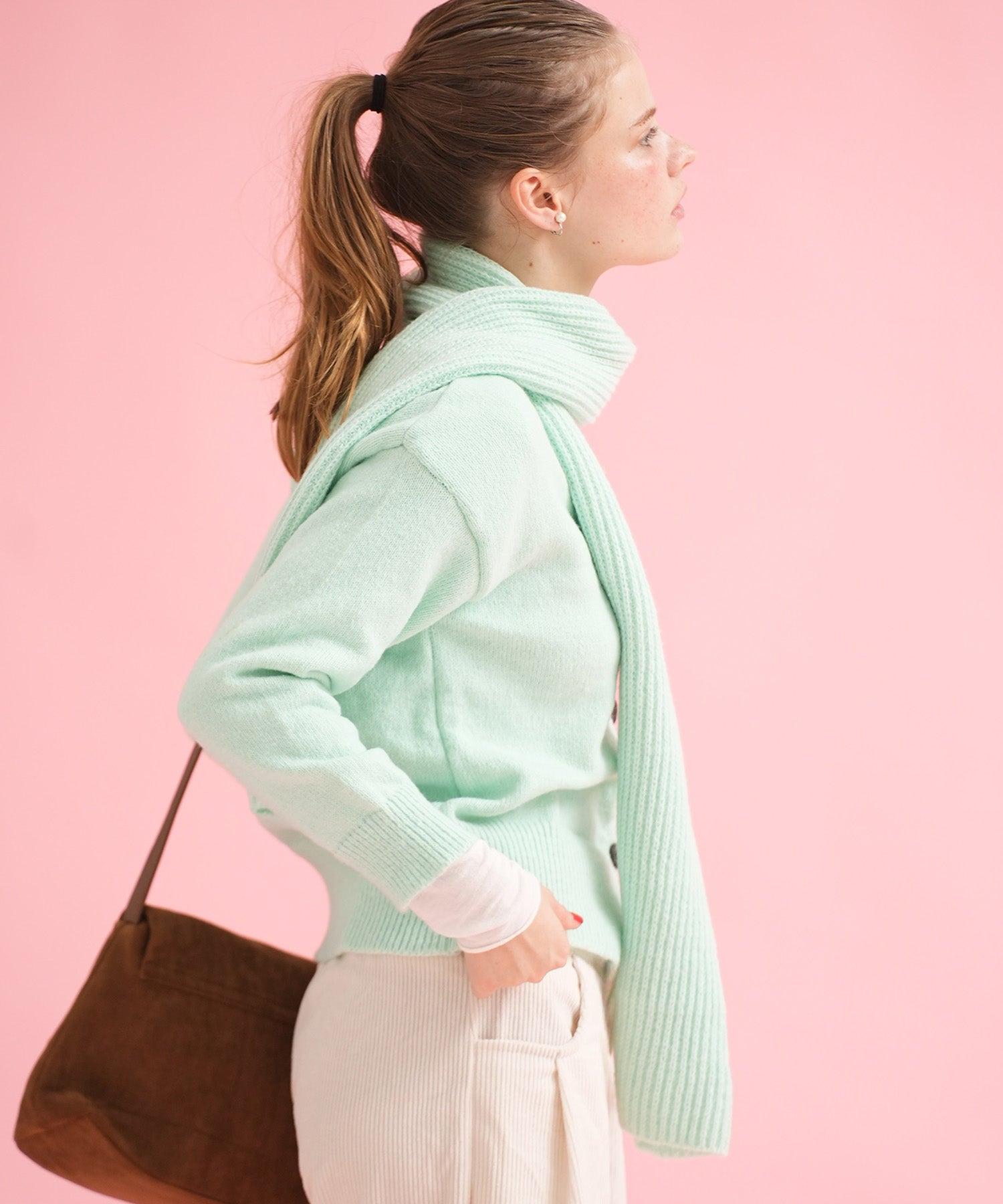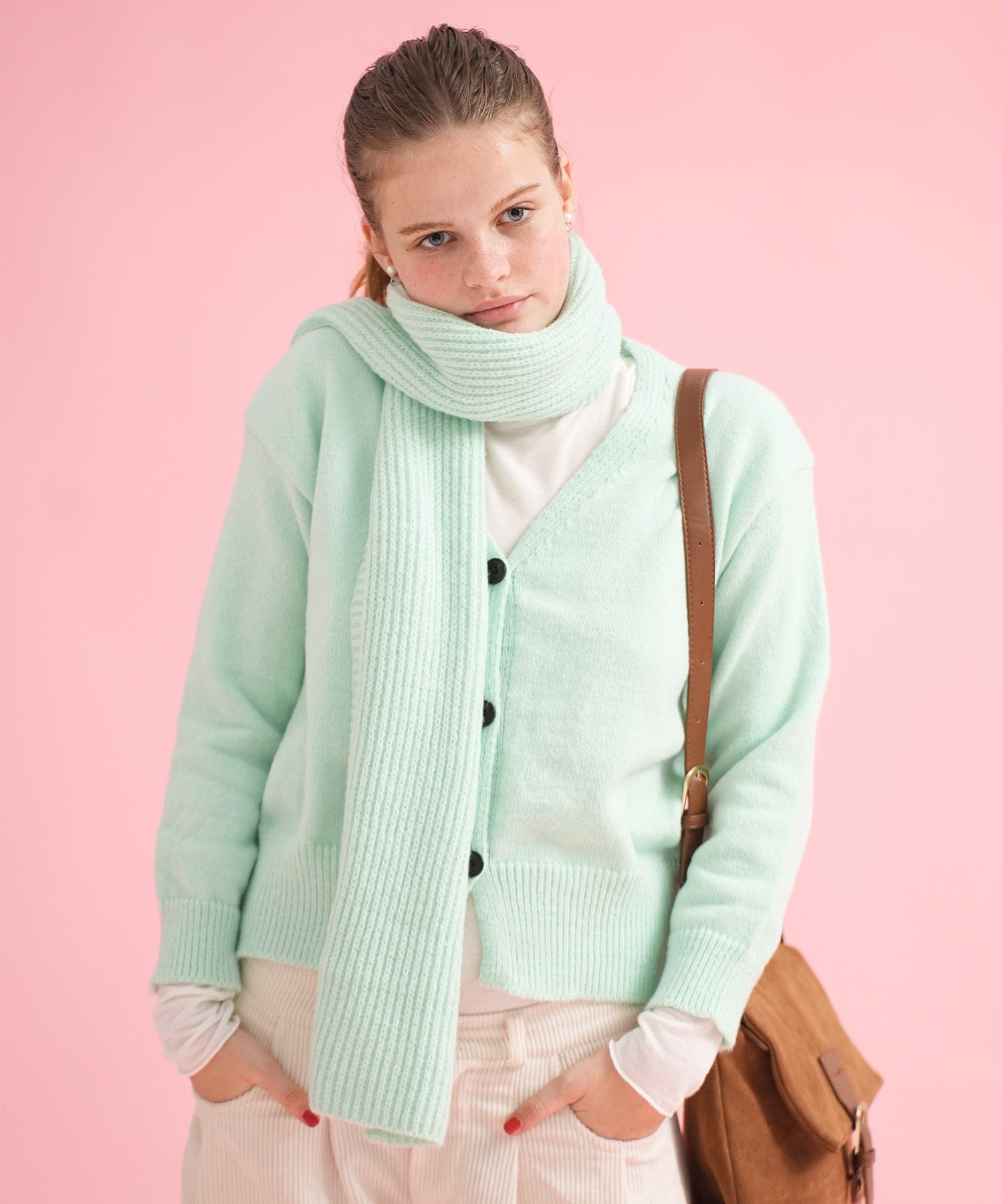 存在感のあるデザインでマフラー単体でも着回せる優秀アイテム!